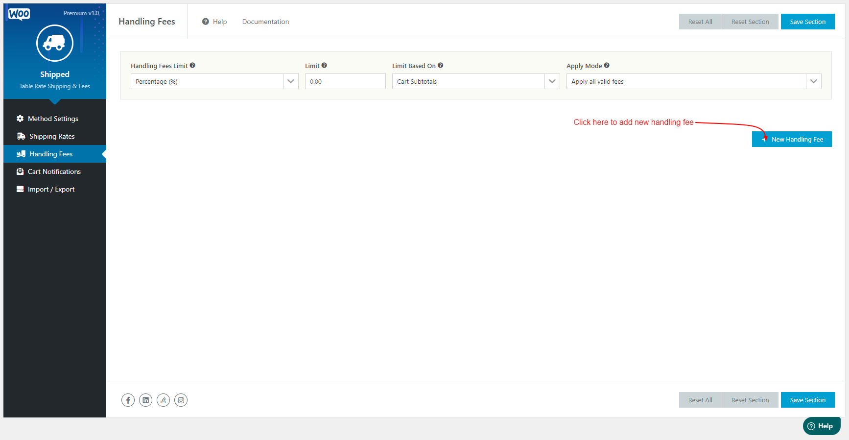 The Handling Fees settings page can be used to create and manage handling fees based on product rules and co, the handling fees can be set as part of a shipping cost or as a separate cart fee.
